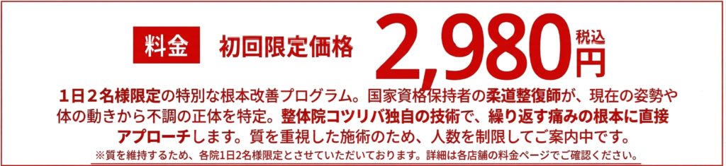 初めての整体をどこにしようか迷われている方は、ぜひコツリバさんのご利用をお勧め致します。