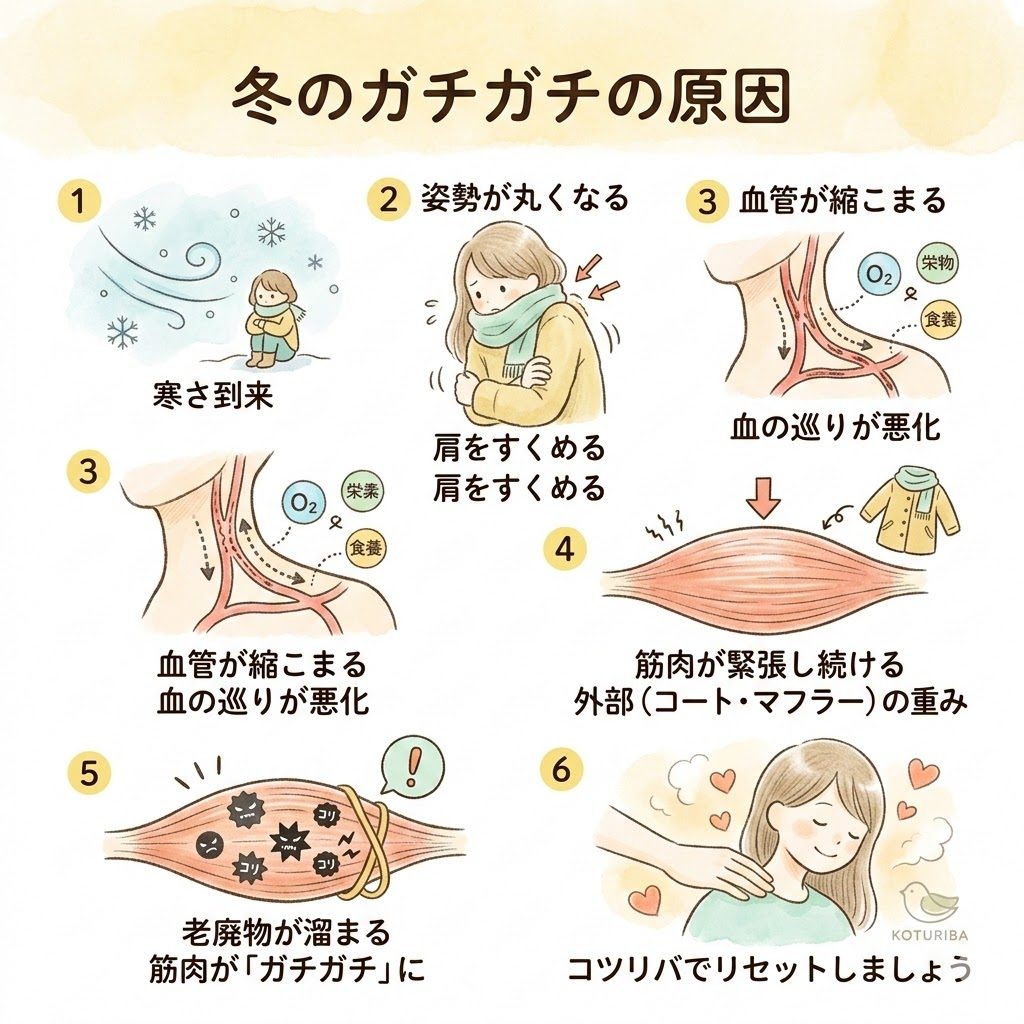 厚手のコートやマフラーの重みも、意外と首や肩に負担をかけていたかもしれませんね。