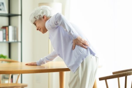 高齢の方が転倒していないのに「急に腰が痛い」と訴えるときは、骨粗鬆症による圧迫骨折が疑われます。特に女性に多く、くしゃみや寝返りでも骨折が起こることがあります。